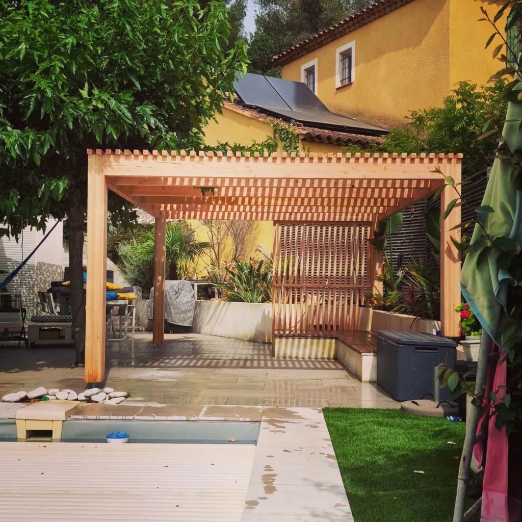 Cette pergola bois sur mesure offre désormais un espace extérieur protégé du soleil et parfaitement adapté à l’environnement provençal de La Valette-du-Var.