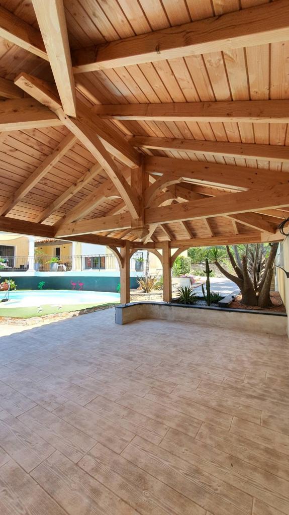 Pour ces clients, habitants la commune de Ceyreste dans les Bouches du Rhône 13, nos charpentiers ont conçu un grand pool house bois ayant pour dimensions 7X4.5m.